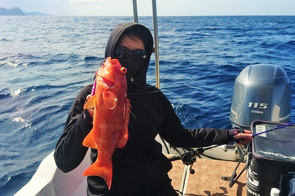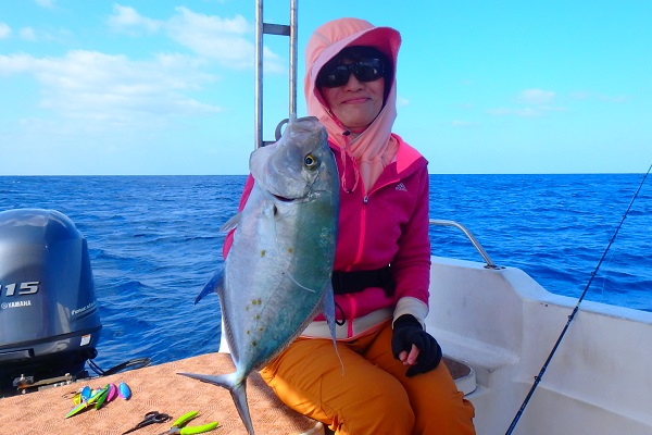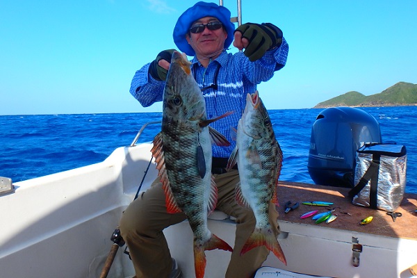 | 最高気温23度・波2mと最高のうみ日和の西表島です。 今日のゲストは石垣島在住のリピーター様。泳がせ釣りの予定でしたが、グルクンが全く釣れないのでジギングへ変更。 まずは、浅瀬でアカジン狙いです。 オオメカマスの群れにあたり3人中2人釣り上げました。 1人は鋭い歯でジグを持って行かれました。 その後は水深100mへ移動。浅瀬よりもアタリは多く、ハタが数匹釣れましたが、全てサメの噛み痕付き。魚の活性が高ければ、サメの活性も高いのか!? |