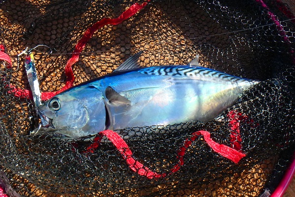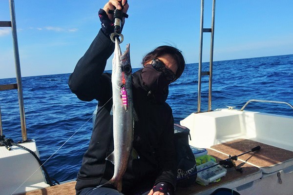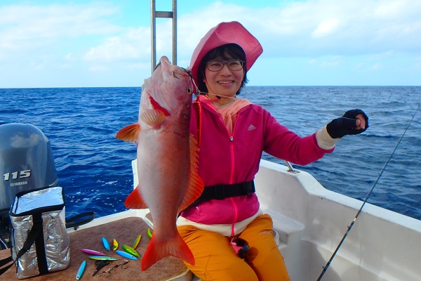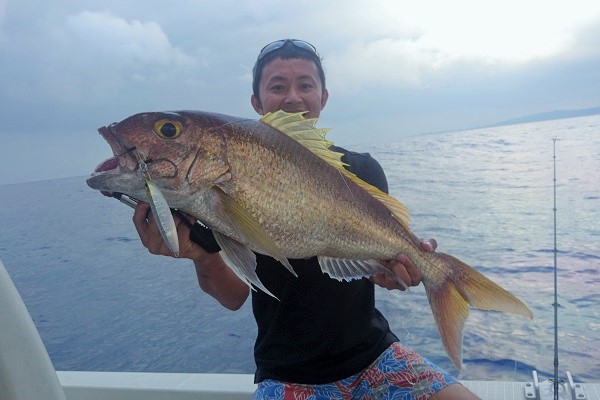 | よーやく船の整備も一段落。そして今日は波1.5mの南風といいうことで安漁丸Vの初釣行へ行って来ました!! 魚探の振動子をセットしたり、魚探の使い方に苦戦しながらも水深200mから立派なナガサキフエダイを頂きました。 潮が緩く、水深200mでPE3号・リーダー40ld・180gのクイックゼロワンでフォールを入れた瞬間食いあげてきました。 キツネフエフキもなかなか良いサイズが100〜120mで釣れています!こちらもシービーワンのジグ。Xsのブルピンです。スマの群れに当たり美味しいお刺身の頂いて、初釣行は大満足の結果になりました。 やっぱり100mオーバーのジギングには夢がありますね〜。 |