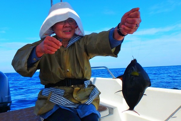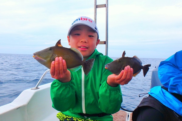 午後は2組のご家族で出船。満ち潮に変わり潮の流れが緩くなりとっても釣りがしやすい海況になりました。![]() カワハギのダブルから始まり、ムルーが連発したのち・・・。 ![]() 釣り好きお兄ちゃんが一人で頑張って釣り上げたシロダイ。 人生最大級の魚だそうで、居酒屋でお刺身にしてもらいます。 ![]() 今日はバラハタも数多く釣れました。小さいサイズは全てリリース。 こちらは煮付けで頂こうと思います。 |