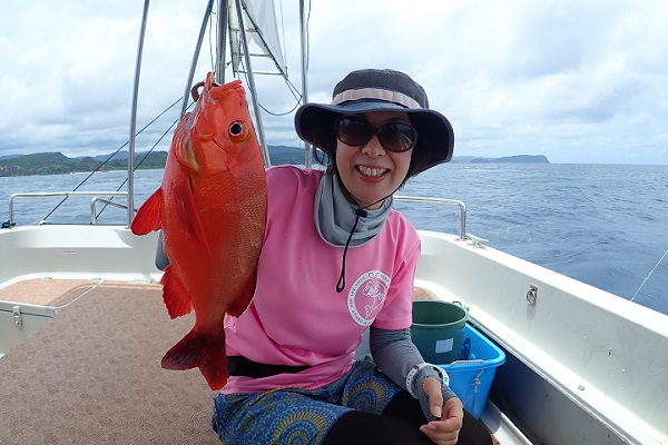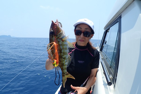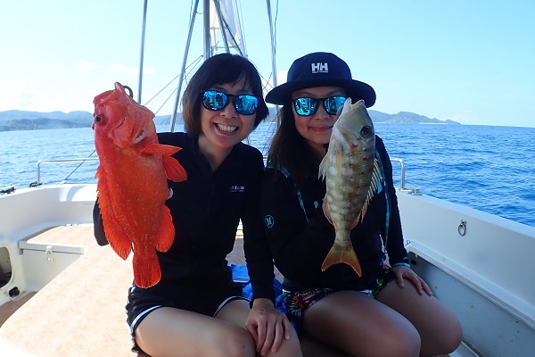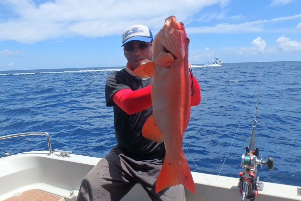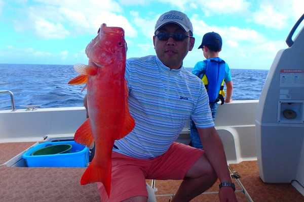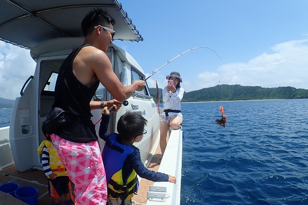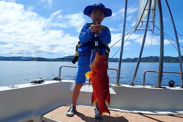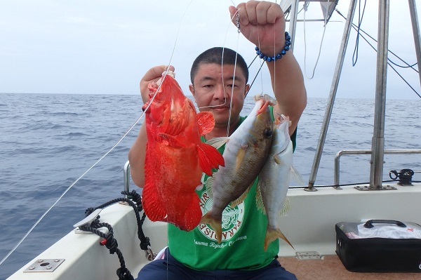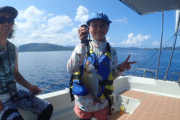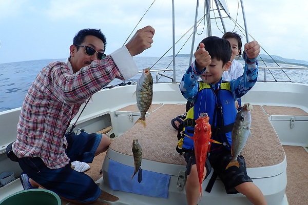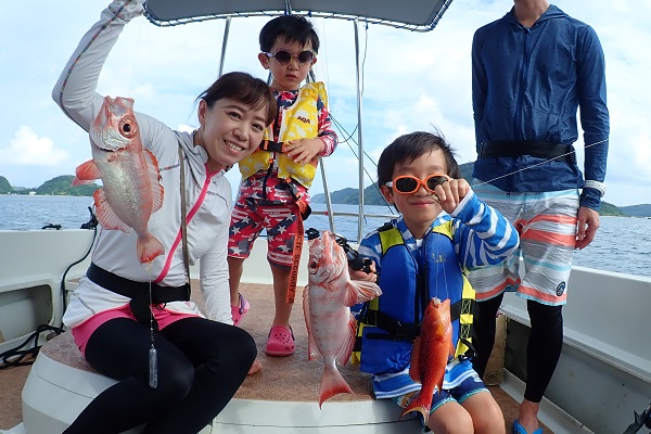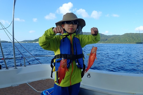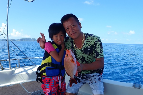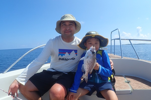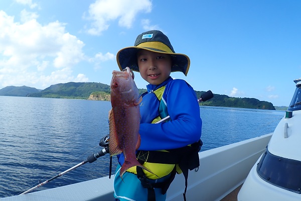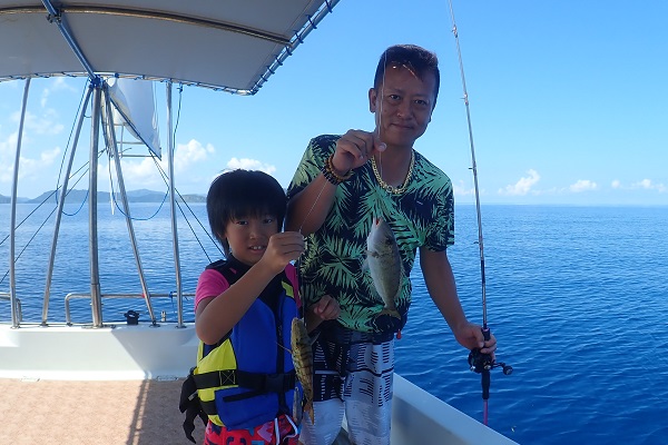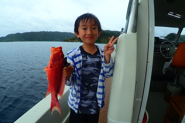 午後からは船釣り初挑戦のご家族です。子供がまだ小さいので湾内の静かな場所へ行き釣り開始です。![]() みんなで釣り上げたナガジューミーバイ。 ![]() 1組だけでご参加でしたらわいわいやり放題です。 ![]() そして午後の大物賞はお兄ちゃんが釣ったアカハタです!太ってて美味しそう。初めての釣りを楽しんで頂けたみたいで良かったです。 |