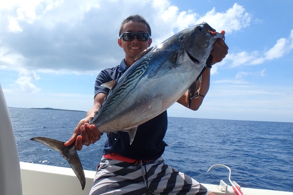 | 去年も同じ時期に遊びに来て頂いたリピーター様。お友達を連れて西表島へ遊びに来てくれました。 南風が強い今日は船を風裏ポイントまでまわしての釣りです。 ![]() 開始早々ジギングで釣れたスマ。カツオよりも美味しいんです! その後もアタリは連発して・・・。 ![]() ![]() ![]() ハタ連発のち、カンパチベビーです!センニンフグのジャンボサイズもつれました。その後お昼ご飯を食べに静かなポイントへ行き、 ![]() 良い反応の中にジグを落として、アカジンゲットです! その後は反応があるものの、タイラバ・餌釣り・ジギングと何をやっても釣れない時間が2時間ほど続き、僕も一緒にジギング開始。 ![]() と、思ったらクロマグロみたいなでっかいスマが釣れました。 明日は釣りをせず、ちゃんと船長業に励みたいと思います。 |