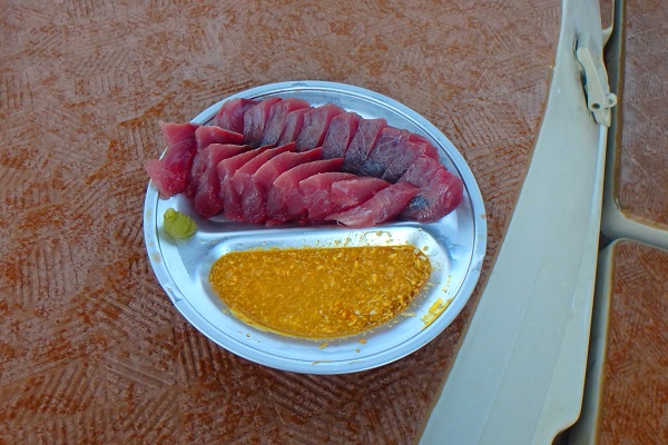 昨日・一昨日に引き続きGT狙い最終日の今日。早朝から出船して朝まずめ狙いです!![]() 気持ちの良い朝。グルクンのナブラを探してポイントをまわります。 ようやく見つけた大きなナブラ。周りにいくつもナブラがあり、時にベイトを捕食しているシーンもありました! しかし、ルアーへ反応してくれない・・・。多少波もあり無理して行ったのにショック。勉強不足を感じた2日半でした。 ![]() 早朝から釣りをしていたので、昨日釣れたスマを刺身でいただきます!醤油・にんにく・マヨネーズのコラボレーション!カツオの相方としてこれに勝てる物はありません。リベンジ是非行きましょう。 |