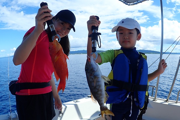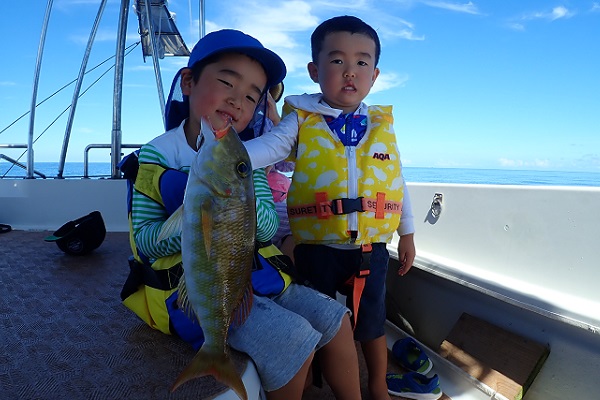 | 波1m、緩い南風と今日もうみ日和でーす。 本日はAMチャーター、PM体験フィッシングで出船。 午前中はお父さんがジギング、子供達は餌釣りです。 ![]() ![]() 海況はすごく良いのに、魚の活性はあまりよろしくない今日。 ポイント移動を繰り返して魚を拾っていく釣りに。フエフキダイやマダラハタなど良いサイズも釣れました。 ジギングは・・・、今日は反応の悪い日でした。 |
