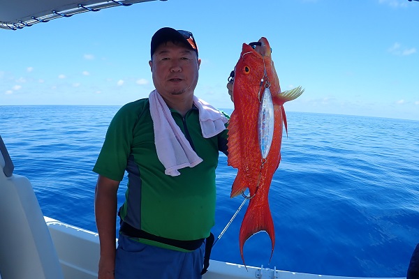 今日は午後から西表島入りしたお客様と、沖縄らしい大きな魚をタイラバ・ジギングで狙ってきました。![]() ジギングでは全く反応がありませんでしたが、タイラバで強烈なバイト!ドラグが出ては巻いての繰り返しで上がってきたのは4kgのキツネフエフキでした。おめでとうございます! ![]() ポイントを移動してジギング開始。しかしジグには反応なく、たまたま釣れたオジサンをジギングの針に掛けて泳がせ釣り。 下に落とした途端にバイト!これまた沖縄らしい美味しいお魚。 午後から半日ながら最高の釣果でした。 |