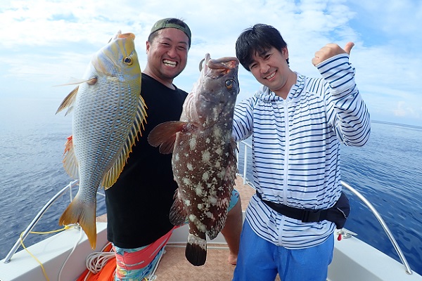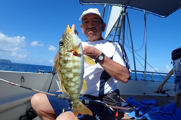 午後からは団体様で沖へ出て大物狙い。チャーターらしい大きな魚を探してきました。![]() お決まりのフエフキダ連発!時に大きなフエフキダイも釣れますが、フエフキダイ以外が全く釣れず移動の繰り返し。ラスト30分で、 ![]() ![]() オジサンの泳がせ釣りに大きなハクテンハタ&餌釣りで40cm超えのタマンとダブルヒット!船の後ろではシロダイも釣れており、高級魚のオンパレード!チャーターコースらしいお魚に出会えて船長も満足の午後となりました。 |