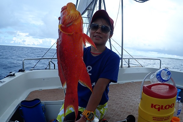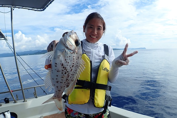 | 9月に入りとっても天気の良い日が続いています! 今日も無風のベタ凪!そんな日は海に行かなきゃもったいない。 本日のゲストは釣り部の彼女&釣り数回目の彼氏です。 ![]() ![]() 2人共フエフキダイ・キツネウオ・カワハギとたくさんの魚を釣っていましたが、やはり釣り部強し!?ハタやヒラーグルクンと美味しいお魚を釣り上げてくれました。湖で釣りをしている位恵まれた海況でした。 |