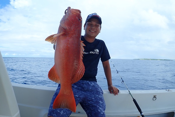 午後からは緩い引き潮から釣りスタート。やはり活性は低いので、ポイントを転々として魚を探してきました。![]() まずは良型のアザハタが釣れ、夜の煮付け分を確保。その後は良いサイズのフエフキダイが連発でした! ![]() ![]() 明日もたっぷり遊びましょう〜。 |