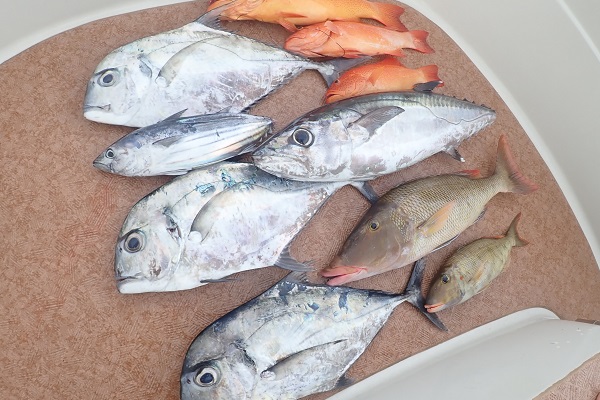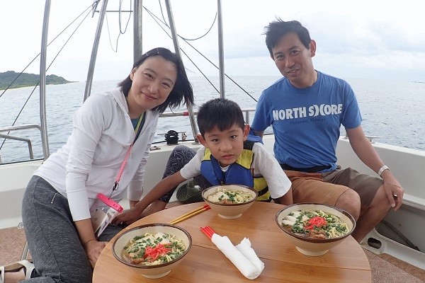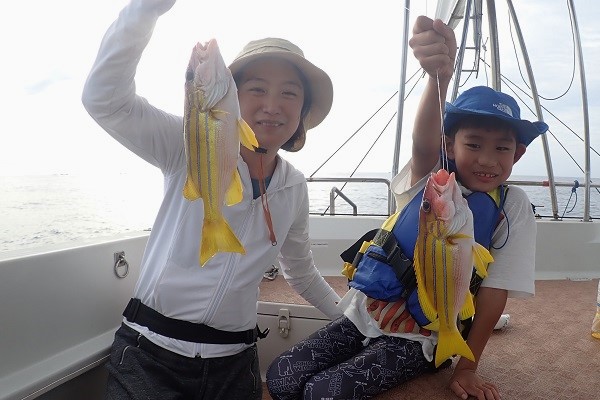 | 昨日の午後から急にうねりが大きくなり始め、沖は少し時化模様。 今日はファミリーフィッシングなので、船浮・網取の湾内で美味しいお魚を狙って1日餌釣りです。 ![]() 釣り大好き少年は1日中頑張って釣り竿を握ってました。まずは船浮湾内でオオクチイシチビキを見事釣り上げてくれました。 ![]() 冬になると脂がのってくる美味しいカマス。母も負けずと釣ってます。 ![]() お昼ご飯はずっと食べたかったソーキそばです。 船の上で食べるとなんでも美味しいですよね!皆様完食です。 ![]() ![]() 最後の1時間は沖へ出て少し水深の深いポイントで餌釣りです。 良いポイントに入れば、仕掛けを落とせばすぐ釣れます。最後の最後にみんな仲良く大漁でした。 今度は更に大物狙って遊びに行きましょうね。 |