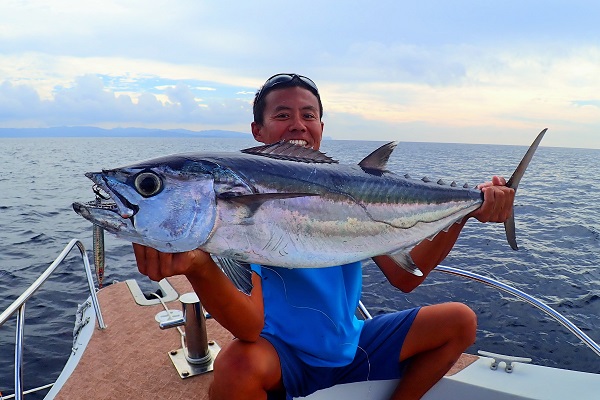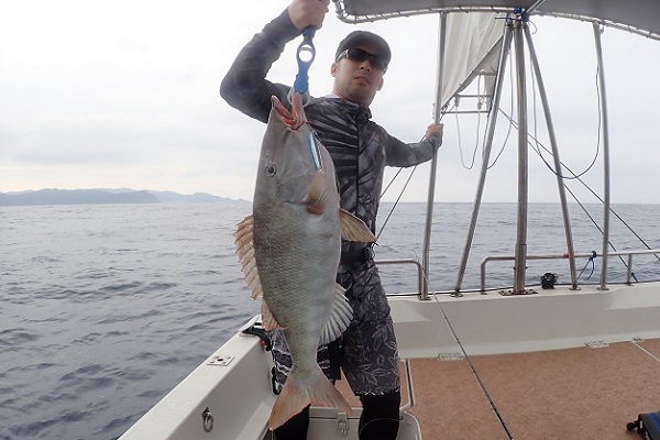 | 昨日までのベタ凪が嘘の様にうねりが大きくなってしまった西表島。 今日の本命はヒレナガカンパチです。波があるのでポイントは限られてしまいますが水深100〜120mで頑張ってきました。 ![]() 本日のお客様は1名様の為、私も一緒にジギングをしました。 開始1投目でイソマグロ、2投目でキツネフエフキという高活性!! どちらも着底後に素早く5m巻き上げ、フォールを入れたタイミングでバイトでした。そしてお客様にもバイトがあり、 4kg超えのキツネフエフキ!!方言でウムナガーです。根に走る魚ではないのですが、トルクのある走りで引きはかなり強いです。そしてその後は湾内へ移動して過去に実績があったポイントを転々としてジギング。 ![]() 水深70mでまたしてもフォールで食ってきました。久し振りのタマンです。お昼過ぎからはアタリが全くなくなり、うねりも大きくなってきたので早上がりです。是非リベンジお待ちしてます。 |