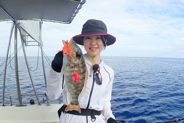 | 11月に入り良い天気が続いてる西表島です。今日の本命はアカジン!タイラバとジギングで狙ってきました。 まずはタイラバからスタート。開始早々アタリがあり、フエフキダイは調子良く釣れています。 ![]() しかしジギングには反応がいまいちです・・・。その後もポイントの移動を繰り返してようやくシロブチハタをゲット! ![]() ジギングへの反応が悪いので、キツネフエフキとシロダイを狙って少し深場へ移動です。 ![]() 移動後の1投目で狙いのシロダイがヒット!引きも強く楽しそうなやりとり。自己記録更新だそうです。おめでとうございます。 その後は潮止まりに入り、タイラバでフエフキダイがぽつぽつ釣れます。是非次回はジギングで大物獲りましょうね!! |