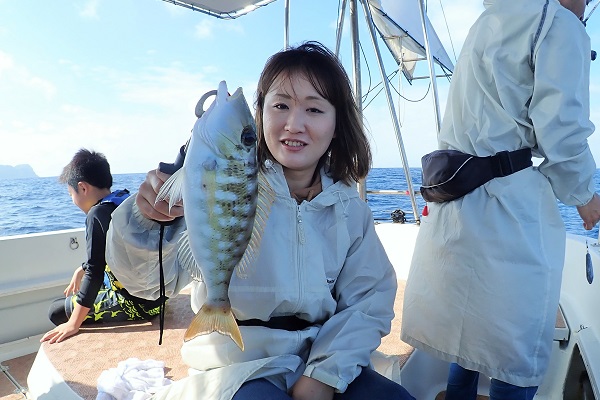 | 年末年始は北風・海は大時化・ずっと雨でよーやく海へ出れました。 今日は2組様と体験フィッシング、太陽も出てきてやる気MAXです! ![]() うねりも大きいので水深20m前後で餌釣りです。魚の活性は悪く、バラハタ・キツネウオ・フエフキダイなどが釣れました。 最後の30分だけ沖へ少し出て餌釣りです。潮の流れがとっても早く釣りにくい状況でしたが、沖の魚達はやる気満々でした! ![]() ![]() ![]() ホウアカクチビ・シロダイ・アミフエフキと色々な種類が釣れました。 沖での釣りは30分だけでしたが、サイズ・種類共に面白い内容となりました。また、来年お待ちしております! |