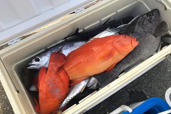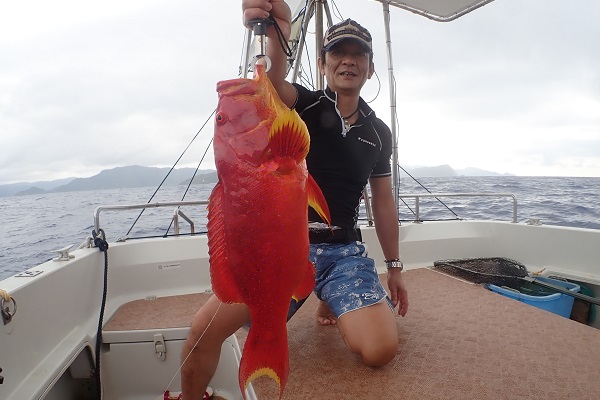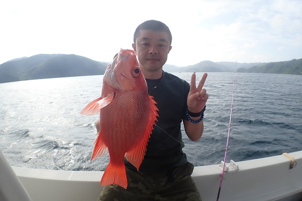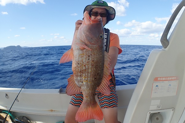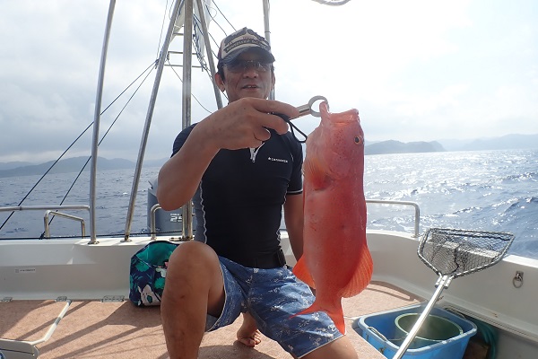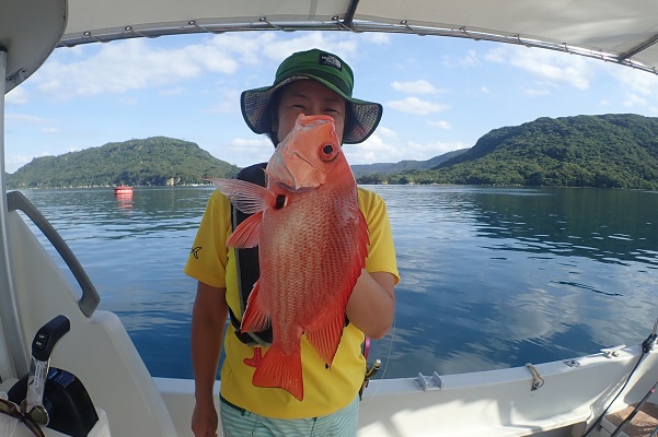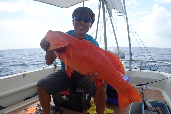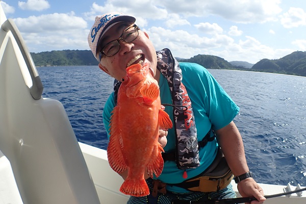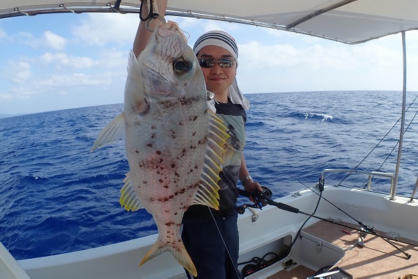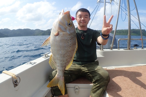 | 昨日に引き続き常連さんと湾内で釣り。今日はいつもやらないような釣りってことで、エビを餌にテンヤ釣りに挑戦しました。 まずは、いつものブイ近くのポイントから〜 エビを落として1投目にして、ワキグロアカフエダイが釣れました!! その後、ミーバイポイントを流すも不発に終わり、1番実績のある水深70〜80mポイントで、 2kg近いタマンをゲット!天気も良く、風も穏やかなポイントで送迎バスの時間ぎりぎりまで遊びたおしてもらいました。 毎度お土産まで頂き、ありがとうございます。今日のテンヤ勝負は引き分けなので、また来年戦いましょうね。お待ちしております。 |