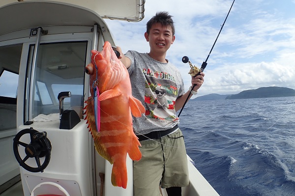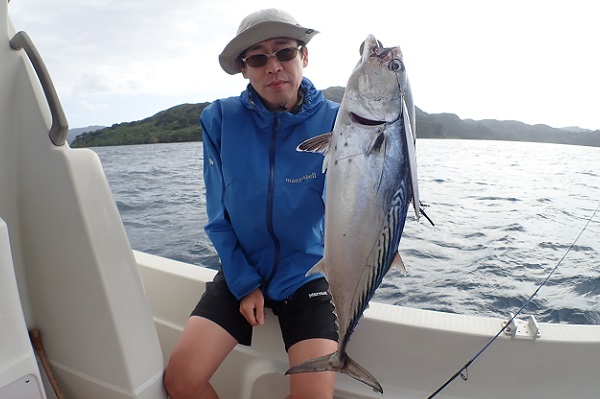 | 時化続きの西表島でしたが、昨日・今日と波1.5mのうみ日和になりました。本日のゲストは伊勢湾仕込みのジギンガー様。PE1.5号・リーダー30Lbと細仕掛けで沖へ行って来ました。 開始早々に良型がヒットするも残念ながら結束からラインブレイク。 その後TGベイトを駆使して、スマ・ナガジューミーバイ・ 謎のハタを立て続けにヒットです!その後、同じポイントを流しても反応がないので湾内へ移動。 干潮からの満ち潮では、魚の活性が悪く湾内では大苦戦となりました! 是非来年、リベンジをお待ちしております!! |