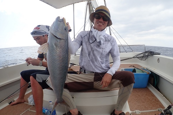 | 波2〜3mと時化ていく予報ですが、今日は地域のお祝い用の魚釣りに行って来ました。島の先輩方を乗せ、今日も船長として出船です。 水深150mから上がってきた4kg超えのツチホゼリ!ジグはボーズレス 太閤ヒデヨシ200gのゼブラグロー。今日は深場が大当たりなのか、ドラグを出す大物が数回HITするも、この水深で上がってきたのはツリホゼリ・アザハタなどのハタ類のみでした。 ポイントを変え、水深150→120mのかけ上がりへ。カンパチから始まり、カツオ・キハダ・良型アカジンなどこのポイントは大当たり!!色々な魚が釣れて最終的には、 ![]() 120Lのクーラーボックスいっぱいとなりました。 潮・風向き・ジグやタックルのセレクトなど全て上手くいっての大漁!! リーダーすっぽ向けや結束から切れたりと大物は数回逃がしましたが、それでもこの釣果!!朝6:30出船、帰港16:30と実釣7時間、先輩たちにジグを動かし続けてもらったジギングとなりました。 |