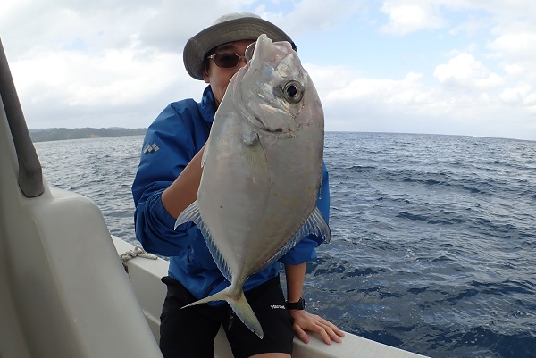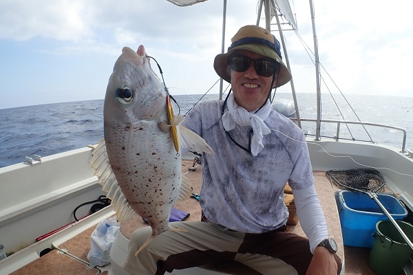 | 北風が少し緩んだので、今日は島の南側まで片道1時間の遠征です。 本日のゲストは、約4年前に乗船していただいたリピーター親子。 波照間島が見えるポイントで、インチク・ジギングをしてきました。 潮が悪く、魚の活性が悪い日。インチクではアタリがないのでタイラバに変えたら4kgのアオチビキ!人生最大の魚になったそうです。 その後は、タングステン製ジグの使い方をお父さんにレクチャーして、 サザナミダイ・ナンヨウカイワリと立て続けにHIT!その後、もう1回バイトがありましたが、残念ながらフックアウト。ジグが傷だらけに・・・。 息子さんも負けじと良型のサザナミダイをインチクでゲット! ラインブレイクやフックアウトなど多く、上げきれた魚は10匹未満でしたがどの魚もサイズは良型。逃がした魚、またいつか釣りに行きましょう。 |