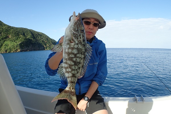 | 今日は東風びゅーびゅーの中、網取湾・船浮湾内でジギングです! 網取湾の奥まで行けば風も弱く、ベタ凪です。開始早々に釣れたキツネフエフキ。その後、ナミハタやニジハタなど小さなハタと戯れ、40mからのかけ上がりで強烈なバイト&ドラグを出す引き。残念ながら根に潜られてラインブレイクでしたが、突然やってくる大物に大興奮でした。 その後、船浮湾内に戻りお昼休憩後、70〜80mラインをずっと探りましたが全く反応なし。回収中に食い付いていた良型スマを追加し、午後の部終了。昨日と同じく午後は全く反応のない日でした。明日がラスト、沖へ出て1日ジギング楽しみましょう。 |