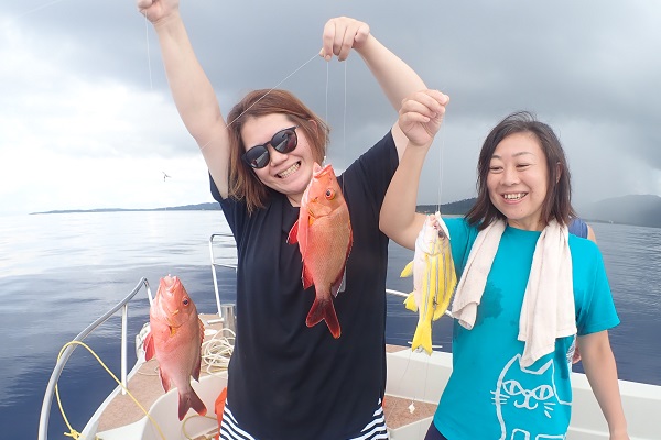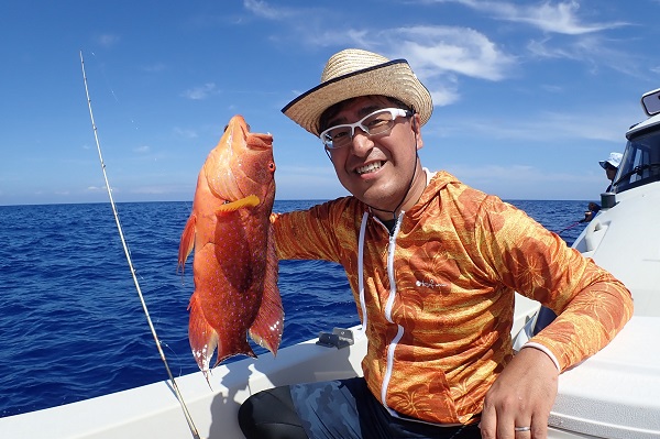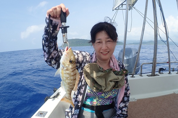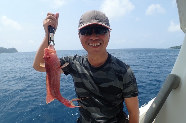| 珍しく夏に北風が吹く西表島。気温も低く、とってもすごしやすいです。 今日は午後から3組様6名と大人数で体験フィッシング。うねりもあるので、島陰に移動をして釣りしてきました。 開始1投目にして、良いサイズのバラハタ登場!一同こんなサイズが釣れるのかと驚きです。その後もポイントを転々として、 島陰フィッシングの本命ナミハタやキツネウオ、フエダイ、オジサンと無事にみんな釣ることが出来ました。特に美味しいナミハタは全部で4匹と潮に恵まれた体験フィッシングとなりました。 |