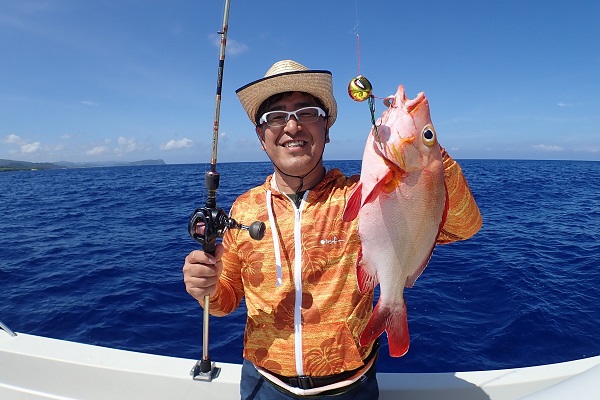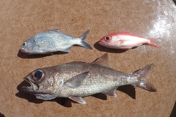 | 今日のサンセットは釣れたお魚を食べたいとリクエストを頂き、あらかじめ居酒屋を予約して出船しました。船釣り初挑戦のご家族、少しうねりはありましたが餌釣りで頑張ってもらいました。 釣り開始時は魚の活性も悪く、アタリが小さく合わせにくい状況。 次第に活性が良くなってきて、 フエフキダイやウメイロモドキなど、食べて美味しいお魚が釣れ始めました。そして、最後の最後に、 見事アカジンをゲットとなりました!魚の活性も良くなったタイミングでサメの活性も良くなり仕掛けをブチブチとちぎられましたが、しっかりと食べる分を確保することができたサンセットツアーでした。 |