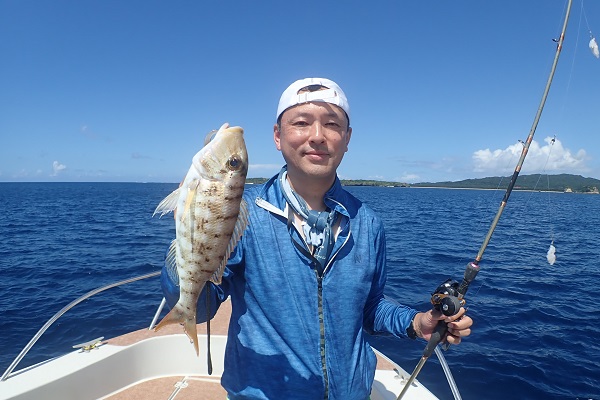 | 台風10号?の影響なのか、沖からは大きなうねりが入ってきている西表島。沖での釣りは困難なので今日は湾内で餌釣り&タイラバで美味しいお魚を狙ってきました。 まずはみんなで餌釣り開始。船釣り初挑戦ということもあり、水深30mから様子を見て釣りをしましたが、開始早々良型タマンが釣れました。 その後もキツネウオ、小型のハタ、フエフキダイなど数は釣れるもののサイズが伸びないので深場でタイラバ開始。 実績ポイントを転々としましたが、餌釣り・タイラバともに全くと言っていいほど反応なし。少しずつ沖へ出ての釣りになりましたが、オジサンが釣れたタイミングで泳がせ釣りへ。 オジサンの泳がせ釣りでアカジンゲット!!全身真っ黒の悪そうなアカジンでした〜。その後は餌釣りで、 フエフキダイ数匹釣って帰港となりました。 なんで?と思うほど魚の活性が悪く、とっても考えた1日。来年、是非リベンジさせてくだい!! |