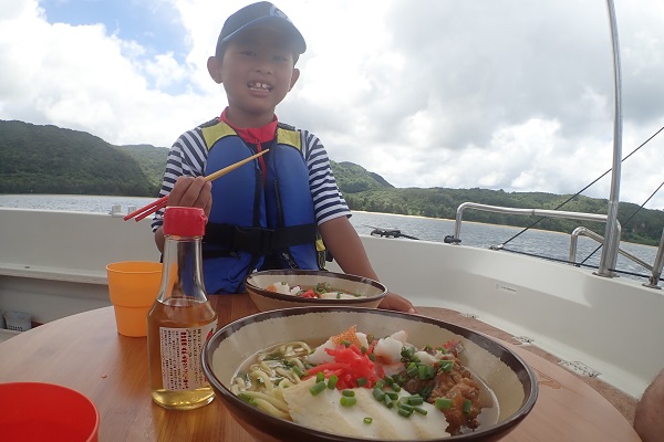 | 今日も朝は気持ちの良い南風。しかし北風になる予報です。風と波を避けて1日遊んできました。 フエフキダイやカワハギ、キツネウオなどを釣りつつ、時に良型ハタも混じってきます。引きも強く釣れたらみんな子供は笑顔に!! アカハタとマルクチヒメジのダブル!今日は赤い魚ばかり揃ってきました。そして、今日石垣島へ戻るとの事なのでお昼ご飯は、 魚の切り身入りソーキそばです!!少し風がありましたが、無事シュノーケルも楽しめました。また来年もお待ちしてますね。 |