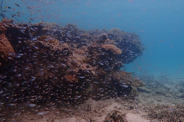 | 昨日からの北風が続き、沖は少し波っ気がある西表島。船酔いが心配なのもあるので、船浮湾内で餌釣り&シュノーケルをしてきました。 レクチャー中の1投目。いきなり強烈なバイト!慣れないリールをいきなり巻いてもらい見事シロダイをゲットしました。その後もアタリが続き、 まさかの大漁です。シロダイだけでも3匹釣れたので、1匹はお昼ご飯に頂きました〜。午後はシュノーケルへ。北風も強かったので、風裏へ行きまったりとシュノーケリング。 小さな根にはスカシテンジクダイの群れ。サンゴも多少ありますが、ツツウミヅタが一面を覆ってました。遠くでは雷&大雨でしたが、風や流れもなくまったりとしたシュノーケルとなりました。 |