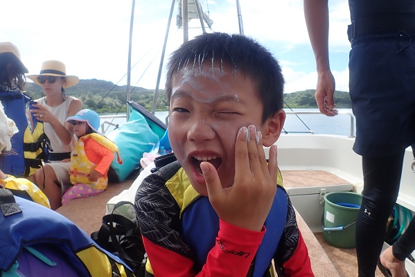 | 台風9号が近づいてきている西表島。風は東風、波1.5〜2mとまだまだ遊べますよ〜。今日は仲良し3家族合同釣りツアーです。釣りもして、無人島に上陸して、釣った魚も食べたいとのこと。出発前から船はばたばたです!! 荷物を運んで、ライフジャケットを着て、日焼け止めを塗って・・・。も、子供が5人もいれば大賑わいです。夏休みらしいひと時です。 釣果はと言うと、波・風共に静かなポイント限定で釣りをしていたのですが、フエフキダイやバラハタなど、良型個体も釣れました〜。 そしてお昼ご飯は外離れ島へ上陸して、子供達は水遊び。その間に、魚を捌き、お昼ご飯を作ります。 泣いたり笑ったりと1日賑やかなツアーとなりました。 |