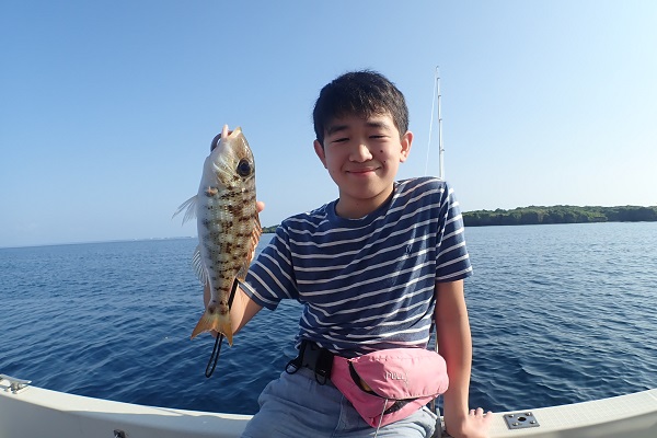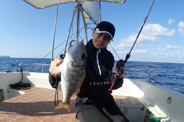 | 波1.5〜2m、緩い東風とベタ凪の中の出船です。 本日のゲストは船釣り初挑戦のご家族。半日頑張ってもらいました。 今日の初フィッシュはフエフキダイです。お兄ちゃんが見事ゲット! その後はお母さんの快進撃が続き、 良型のナミハタから始まり、フエフキダイの2連発!これぞビギナーズラックって感じです。今日はどのポイントに行っても食いがいまいちで苦戦しましたが、なんとかみんな魚を釣ることが出来ました。 あしたは北風が強く吹く予報!?海に出れたらいいな〜 |
