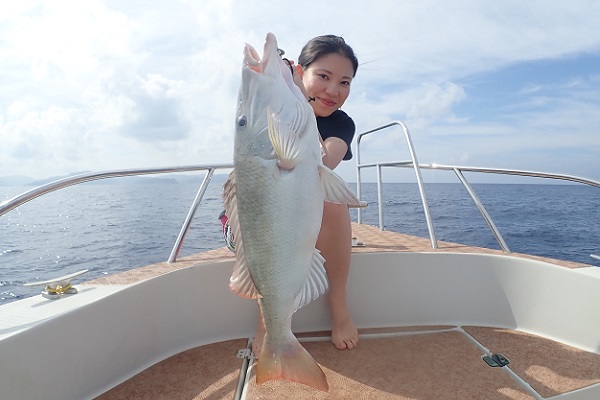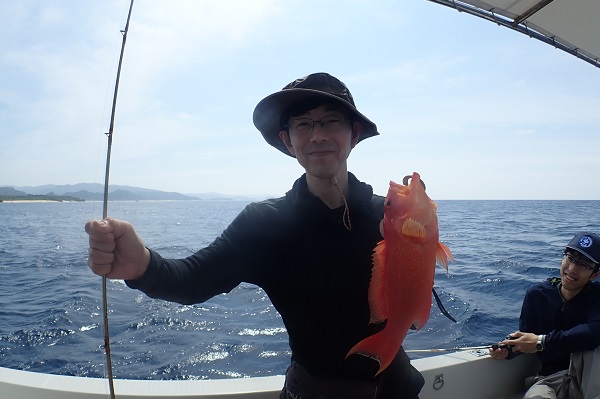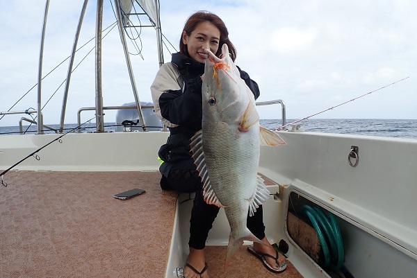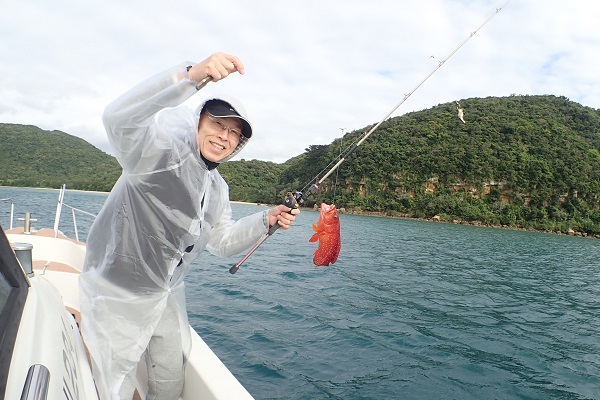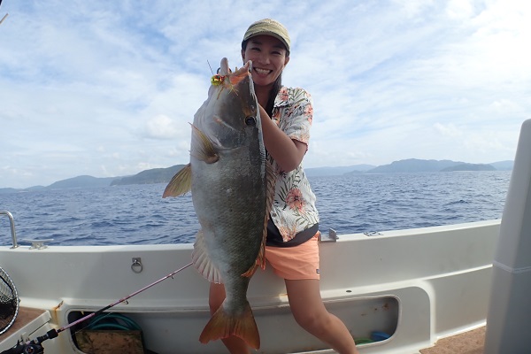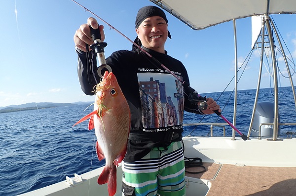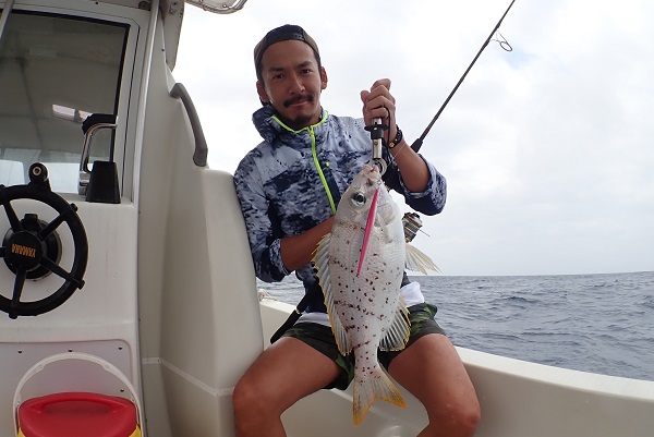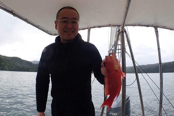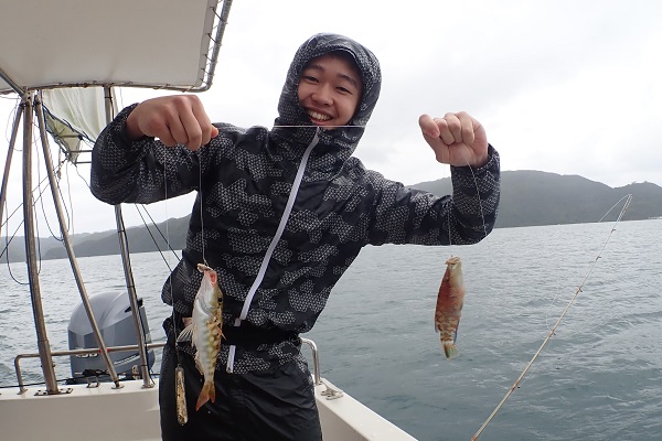 | 午後からは雨も上がり、少しだけ青空も!風が強くなってきましたが、魚の活性はというと 初めの1投目でヒメフエダイとオキフエダイのダブルヒット!このまま続くかと思いましたが、潮止まりでアタリが全くなくなり・・・、 ピンポイントながら良いポイントを見つけ、キントキ・ミミジャー・ユカタハタなど無事にみんな釣ることが出来ました。 次回は静かな時に沖へ出て釣りしましょうね。 |