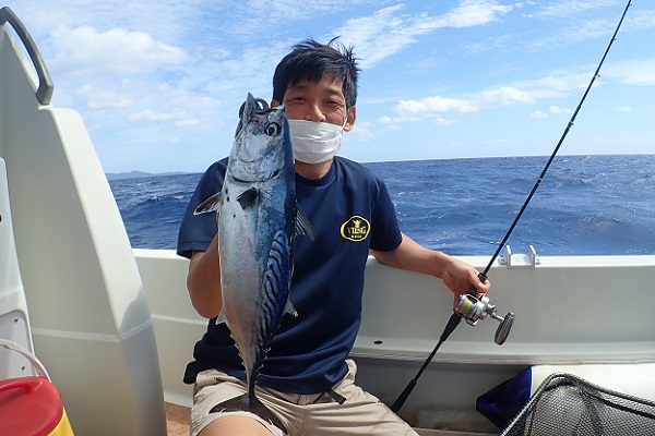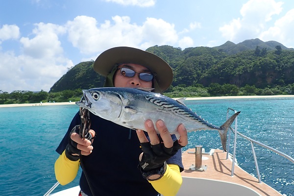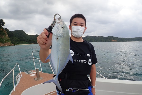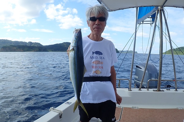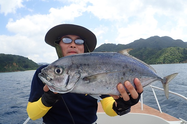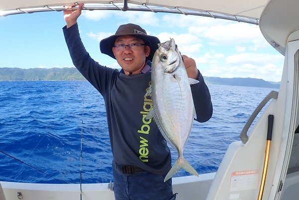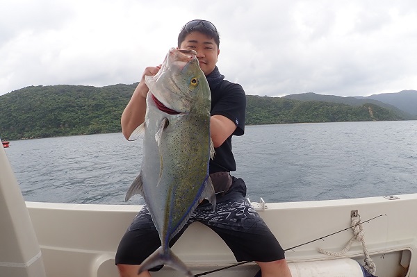 | 今日も台風の影響か?北風続きの西表島です。今日は体験フィッシングで水深20〜30mのポイントで餌釣りです。 外海が時化ているからなのか?湾内にツムブリの群れが入ってきており、餌釣りで良型を1尾ゲットです!!しかしこの1尾以外は小さなハタやベラなどが数匹釣れただけで、魚の活性も悪く大苦戦となりました。 |