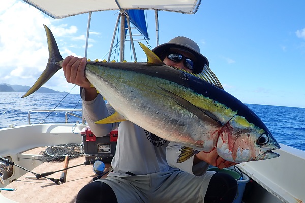 | 北風も一時的に治まり、夏日が戻ってきた西表島です。 お待たせいたしました!うみ日和でもようやくGO TO トラベル地域共通クーポンの取り扱いを開始いたしました。 紙クーポン・電子クーポン共にご利用可能となっております。 そして夏日な今日はノーゲストの為、釣り仲間の先輩を深海釣りへとご案内してきました! 丸々太ったキハダマグロや、水深420mで掛けたオオクチハマダイなどジギングシーズン INしました! PE2.5号を500m巻けるベイトリール、ジグ500gがシャクれる6ftのジギングロッドをご準備の上、遊びに来てください。大興奮間違いなし! |