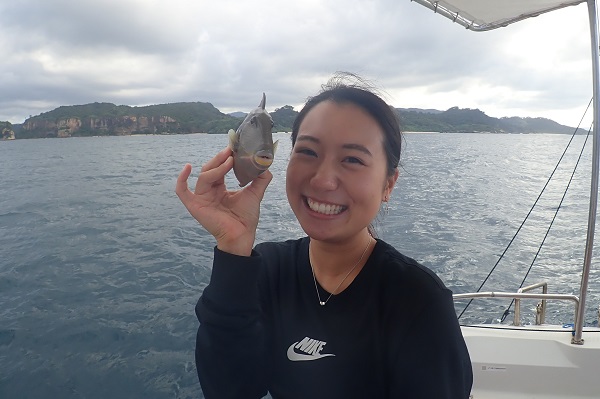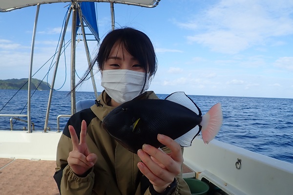 | 今日から11月というのに沖縄の南側では台風の渋滞。最高気温28℃で蝉が未だ鳴く暑い陽気です。今日は体験フィッシングで美味しい魚釣り。 あらかじめ居酒屋を予約して、出船してきました。 台風の影響もあり、大きなうねりが入ってきていて釣りにくい状況。しかし開始数投でカワハギを見事キャッチ!その後はキツネウオやニジハタなどの体験フィッシングらしい魚と遊んでもらい、 急に魚の活性スイッチが入ったみたいで、フエフキダイ・ハタ類が調子良く釣れ、なんとか夕食の食材ゲットとなりました。次回はもっと大きい魚を狙いに行きましょうね。 |