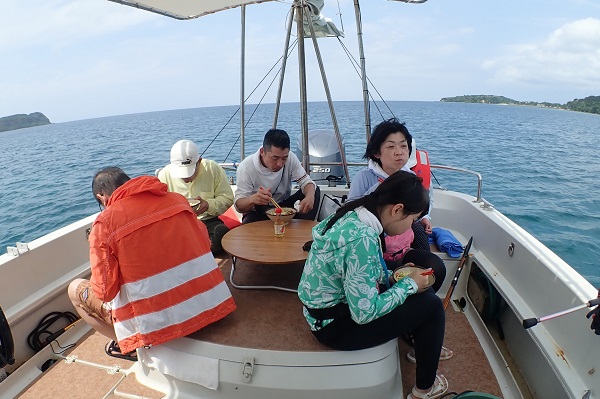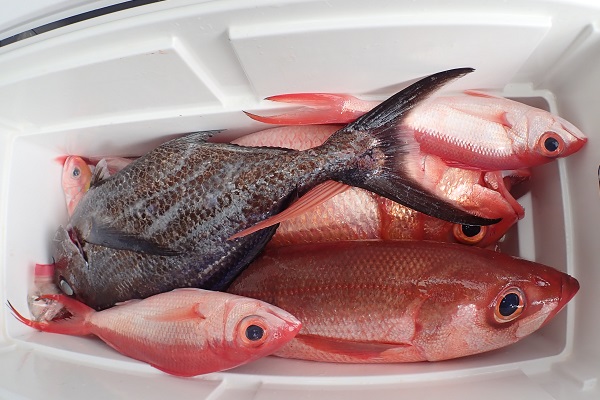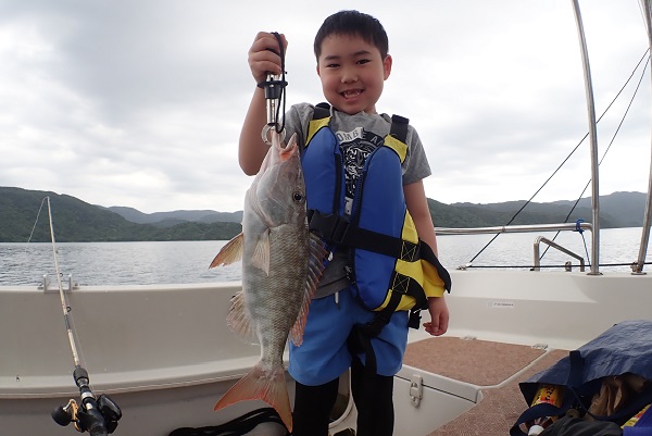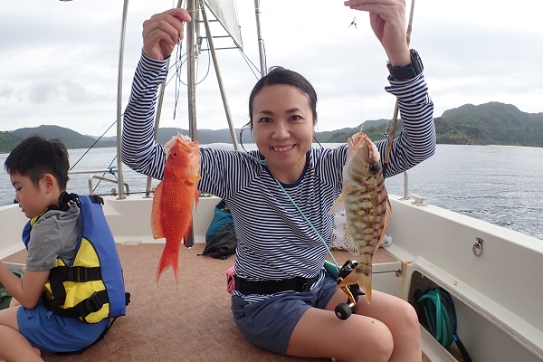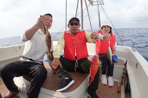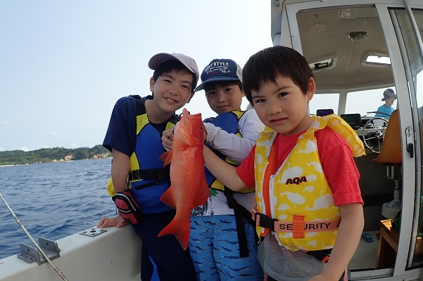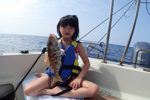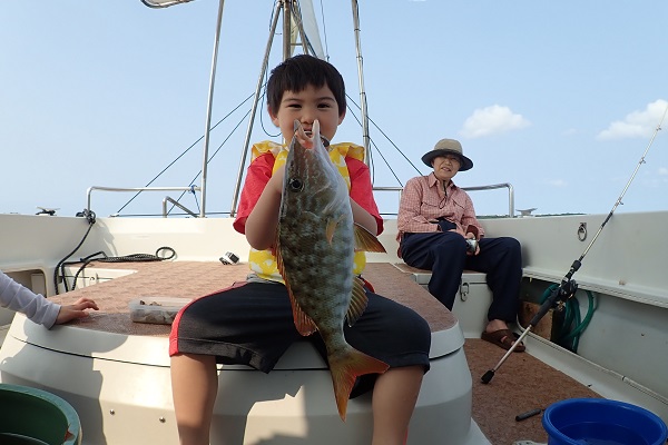 | 午後からは3世代で体験フィッシングです。数こそ釣れませんでしたが、 ウメイロモドキ・アカジン・キツネフエフキなど、体験フィッシングとしてはかなり良い魚達が釣れました!美味しいお魚を堪能して下さい。 |