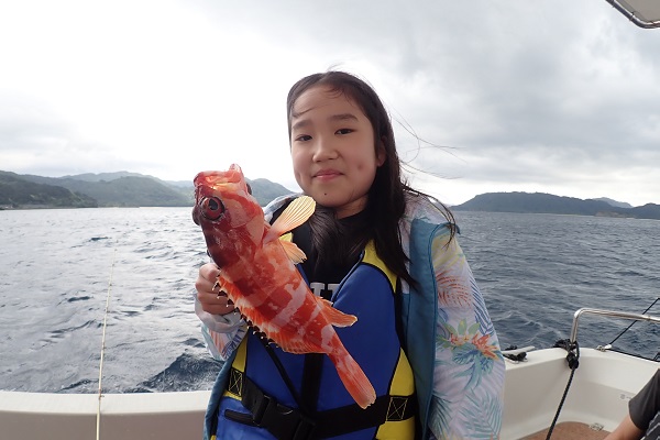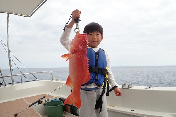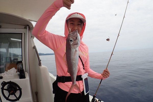 | 昨日までの時化もおさまり今日からまたうみ日和がやってきました! 今日は、午前・午後と体験フィッシングに行って来ました。 船釣り初挑戦でしたが、開始早々強烈なバイト!まさかの餌釣りで高級魚アカジンを見事ゲットです。お姉ちゃんも負けじと、 オオクチイシチビキが釣れました!徐々に晴れ間も見え、とっても気持ちの良い午前中でした。 |