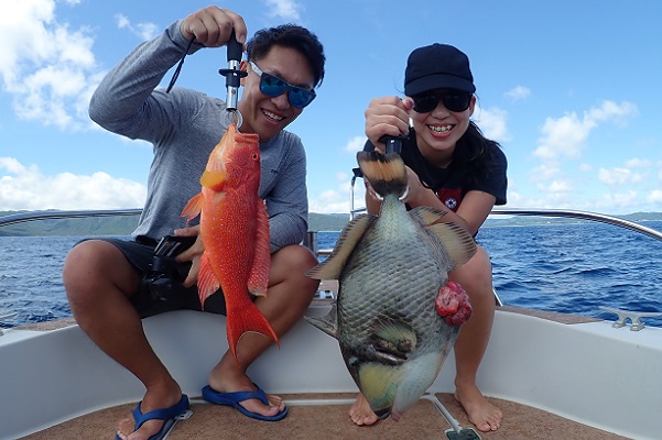 | 営業自粛後、約2ヶ月振りに海へ仕事として行って来ました。 今日のゲストはホテルで働いている島民です。餌釣りとタイラバで美味しいお魚を狙ってきました。 自粛明け最初の魚は、タイラバで釣り上げたナガジューミーバイとゴマモンガラ!脱腸をして凄い姿で上がってきました・・・。その後もタイラバは絶好調で、 立派なナンヨウカイワリ・アカジンと美味しい魚のラッシュです! お昼過ぎからはタイラバに反応が無くなり、餌釣りタイム!! マルクチヒメジ・シロダイ・オオクチイシチビキ・バラハタと、久し振りの海はとっても機嫌が良く、全15種類の美味しいお魚が釣れました! しかし、獲れなかった魚も多数・・。これだから釣りは楽しいです。 7月のご予約も受け付けております! |