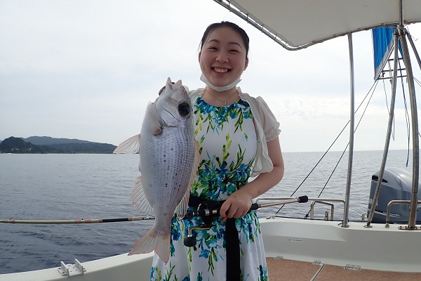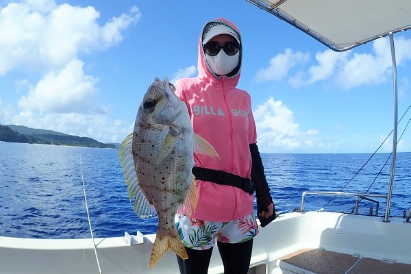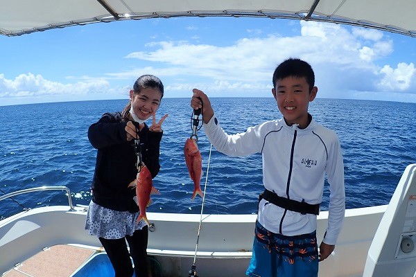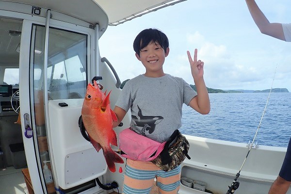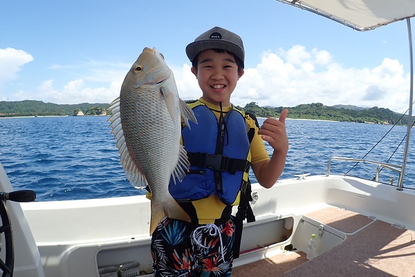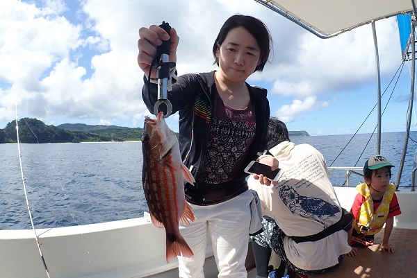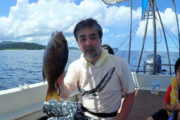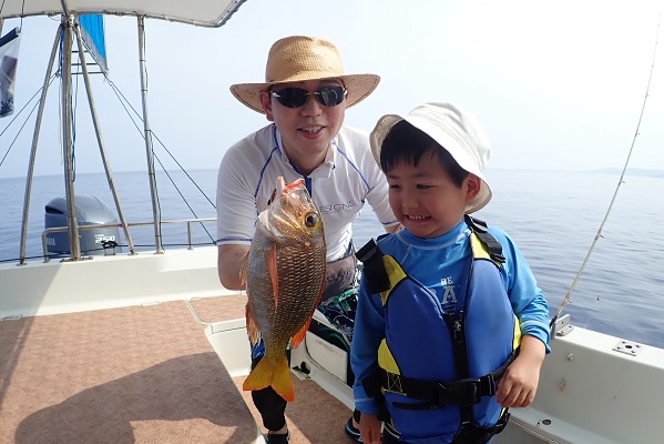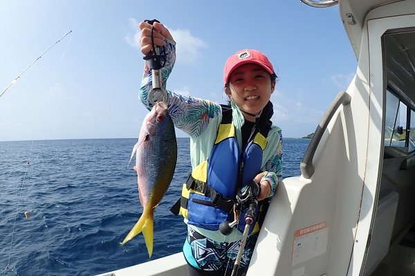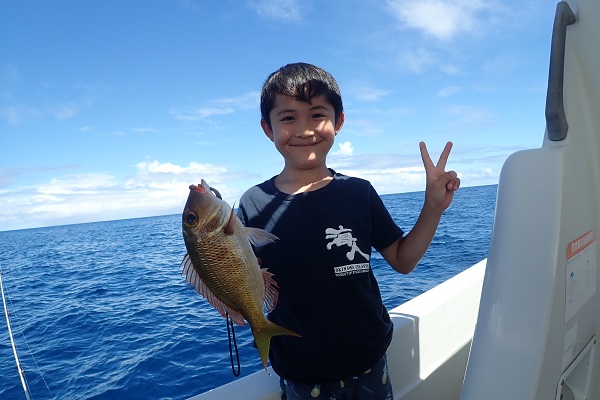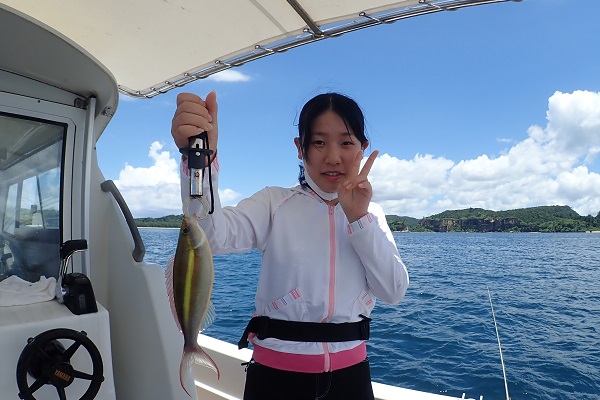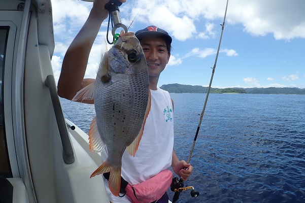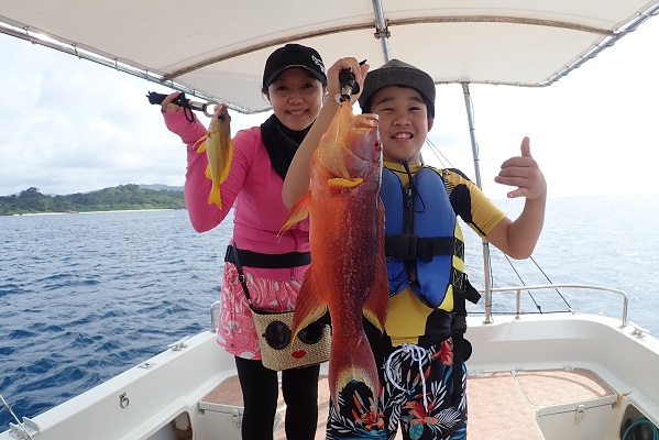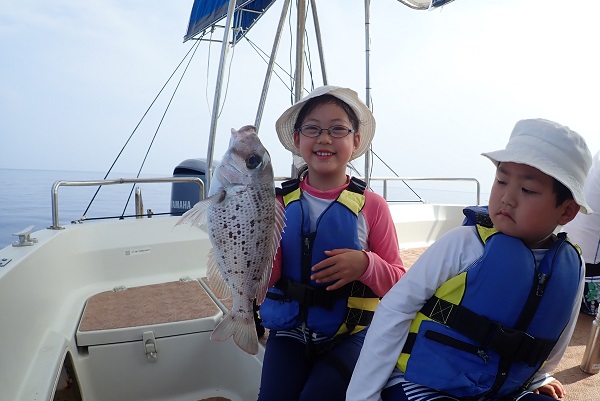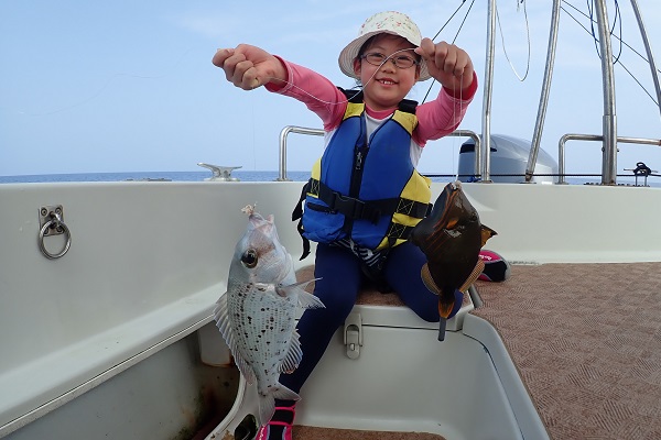 | まだ熱帯性低気圧の影響もなく、快晴・波1.5m・緩い風と3拍子揃った体験フィッシングです。今日はリピーターご家族様と出船してきました。 今日のファーストフィッシュは次女のお姉ちゃんが1投目で釣り上げたキツネウオ!キツネウオ界ではかなりの大物です!その後も、 オジサンの群れに当たったり、小〜大フエフキダイが釣れたりと高活性な体験フィッシング。そろそろ終了時間直前で、 良型ナガジューミーバイを見事ゲット!釣れた魚は翌日の夕食へ。 是非また遊びに来てくださいね〜 |