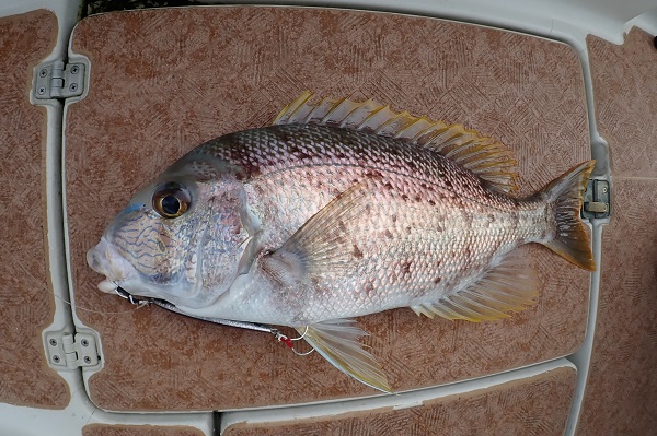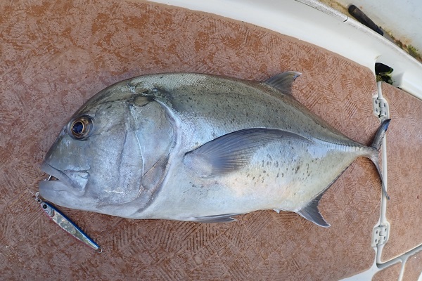 | のろのろ台風の影響でうねり・風共に強く残り、久し振りの出船です。 今日は水深100〜450mでまだ釣りをしたことのないポイントで調査。 水深120m、ポイントに着いて1投目で食い付いてきたサザナミダイ! ジグはshout ショーテル 160g イワシスクイッドカラーです。 その後、潮が緩いので300〜450mまで探索しましたが、全く反応なし。 色々とポイントを転々として今日は150〜180mまでが良く釣れました! サザナミダイ・ホウセキハタモドキ・マーマチ・ミミジャーなど数釣りが楽しめた1日でした!が、大物の気配はナシ!!潮の問題か!? |