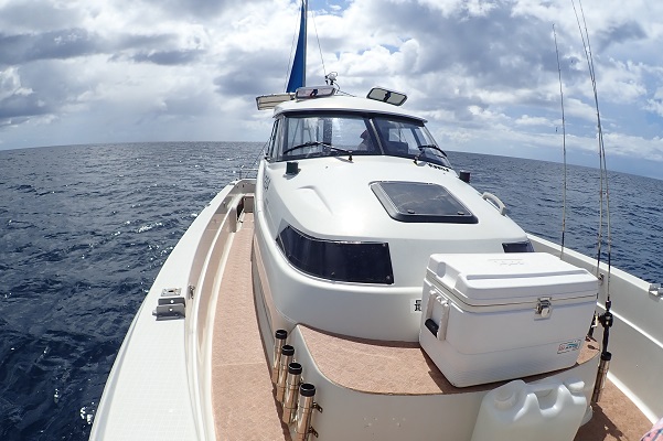 | まだまだ続く波1mのうみ日和、今日はお魚大好き兄弟が初めての船釣りへ挑戦に来て頂きました。 外離れ沖は無風のベタ凪!とっても釣りやすい&魚の活性も高くシロダイとクマドリのダブルヒットから開始!そしてここから良型の魚が、 マダラハタ・クチナギ・シロダイと美味しいお魚達が連発です。 お昼休憩は浅瀬に船を停め、テーブルを用意してお弁当&お刺身です。 お魚大好きとは、食べる事が好きな兄弟。シロダイ・フエフキダイの2匹が数分でなくなり、シロダイ追加オーダーとなりました。 午後は魚の活性が落ち、小さなアタリを上手く取りキツネウオ・ハタ類を追加となりました。海況に恵まれた1日となりました。 |