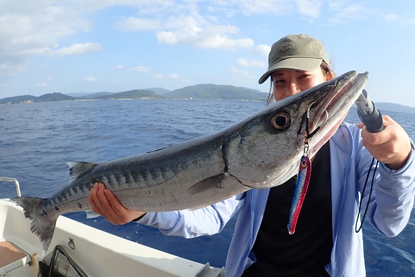 | 天気も徐々に安定してきて、気温24℃前後の日が増えてきた西表島。 観光客もまばらですが、海は波1.5mとうみ日和の今日。ホテルスタッフが大物狙いで釣りへ行きたいとの事で出船してきました。 ポイント到着1投目にして2人に大物HIT!残念ながら1人はラインブレイク。もう1人は4kg超えのキツネフエフキを見事釣り上げてくれました。 その後も魚の気配はムンムンで、 フエフキダイ・回遊魚・根魚と良い潮に当たりました。 全てPE1.5号・リーダー30Lb ハヤブサ フリースライド120gです。 ドラグをしっかりと調整してあげれば、水深100mからでもこんな大物を釣り上げる事も可能です。ジギングは食いが悪いく大苦戦しましたが、 最後の最後にボーズレス ヒデヨシ120gに大型バラクーダがHIT! 食べる分を十分に確保できた釣行となりました。 |