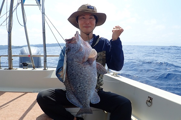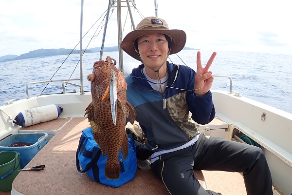 | 波 3〜2.5m、風 北西3〜4m、8時満潮・14時干潮の大潮 大きなうねりがありましたが、風が弱く沖へ出て釣りが可能な為、1日ジギングを頑張ってきました。 本日の初ヒットはカイワリです。船ジギング初挑戦のお客様でしたが、陸では渓流・ショアジギングと経験があるため、危なげなく1尾目ゲット! その後ドラグが出る大物がHITしましたが、ドラグがきつ過ぎた?のか途中で残念ながらバラシ・・・。大物を求めて徐々に深いポイントへ行き、ついに水深100mで、 とっても美味しいツチホゼリとシロブチハタなど根魚祭りです! 14時の干潮を迎え、潮の流れが緩くなり最後はサメの猛攻となりました。うねりが大きく船酔いとの戦いでしたが、気持ちで乗り切った1日。是非また遊びに来てくださいね〜。 |