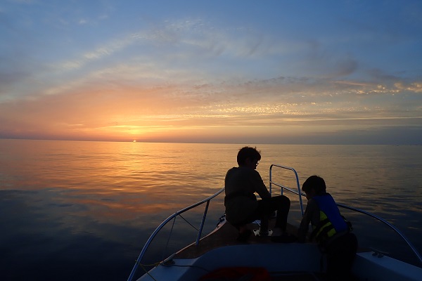 | ベタ凪続きも今日で終了!明日から波1.5〜3mとしばらく時化予報。 最後のベタ凪をサンセットフィッシングで堪能してきました。 開始早々ムルーがHIT!居酒屋の予約をしてご参加頂いたので夕食食材をしっかりつらないとです。もう1組様は、 オジサンとビタローを仲良くダブルヒット!しかしその後はアタリがあっても小さく、食い渋っていました。 |
