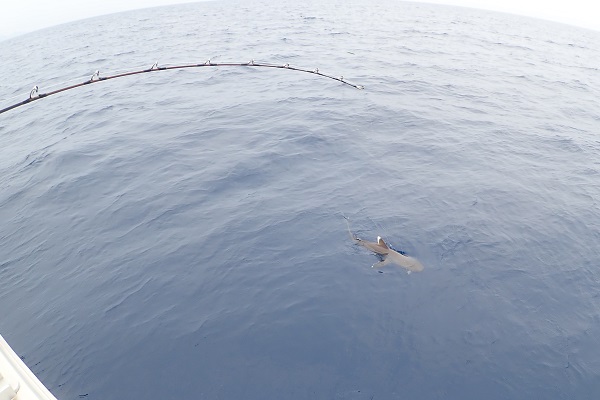 | 今日のサンセットは明日の餌釣り&時間があれば泳がせ釣りです。 グルクンは素直に釣れ、1時間で40〜50匹は無事確保!時間が余ったので、日の入りまで泳がせ釣りです。 魚の活性は良く、サメ多数・アオチビキ2連発です!!本命の根魚は明日のお楽しみとなりました。明日から3日間宜しくお願い致します。 |