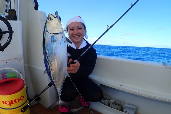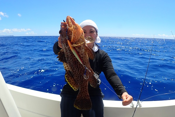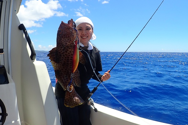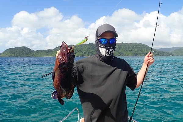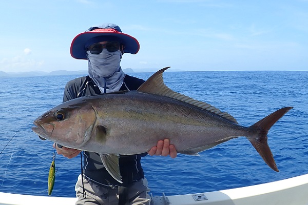 | 風も波も穏やかになってきている西表島。今日のゲストは内地の釣具屋勤務の娘さんが自前タックルを準備して大物狙いへ来てくれました。 開始早々周りでは鳥山が出来ており、フォール中にスマ・カツオがバイトしてきます。何匹でも釣れそうでしたが、2匹いれば十分の為移動。 今日は魚の活性がかなり高く、小物から超大物までバイト数はかなり多い1日でした。特に着底直後の数アクションでのバイトでは獲れないサイズの魚が多数。残念ながら計5回も大物にやられました・・・。 次回はPE3号タックル・リーダー60Lbでリベンジしましょうね。 |