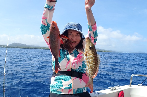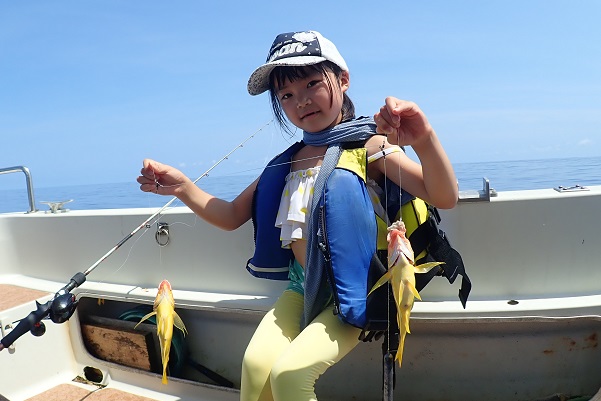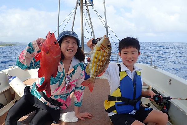 | 台風も過ぎ去り、ようやく海況が回復しました!今日からまた夏休み再スタートしますよ!!今日は午前にチャーターで沖へ出て餌釣り、午後は体験フィッシングです。まずは午前から、 魚の活性はかなり良く、仕掛けを落として、数回巻いている間にアタリがあります!フエフキダイをたくさん釣りながら、ミミジャーやハナフエフキなど美味しいお魚も混じってきます。 お父さんは良型ミーバイ専門!お母さんはなぜはミミジャーを引き寄せます。そして今の時期のミミジャー、最高に美味しいです! お酒は飲めませんが美味しいお魚堪能して下さいね。 |