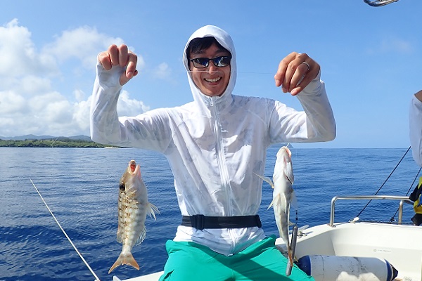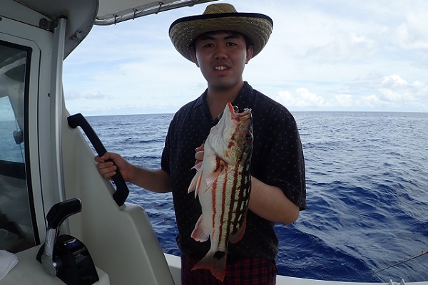 | 台風の影響もなくベタ凪の西表島。今日は大人たちの夏休み、1日チャーターで大物狙いです。 開始1投目にして良型フエフキダイ!しかし、潮の流れが早すぎてすぐに移動。その後は船を立てて水深100mで餌釣り。カワハギやフエフキダイなどが釣れますが、本命のハタは不在でした・・・。 多少風が強くなってきたので、湾内でハタ探し!実績ポイントを転々としてなんとかアザハタを2匹キャッチでした。 最後は根魚ポイントでスーパーライト泳がせ釣り。強烈なアタリがありましたが残念ながらラインブレイク。リベンジお待ちしておりまーす! |
