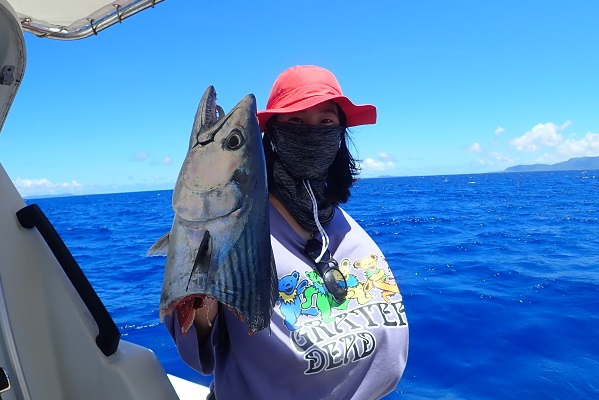 | 今日は緩めの南風、波1.5mと気持ちの良い天気です。しかし出発直前でスコール!夏らしくなってきました〜。 今日はご家族を体験フィッシングへご案内です。 天気が良いから写真が映えますね〜。波が穏やかな湾でフエフキダイ・小型のハタなどを釣って遊びました。 最後にはコバンザメも登場です。本番は明日の夕方のサンセットチャーター!大物狙いましょう、2日連続宜しくお願いします。 |