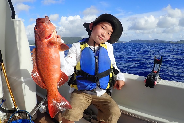 | 今年の5月にも遊びに来て頂いた釣り好き親子がまたまたご来島! 今回もジギング・タイラバで根魚・青物狙いです。 水深50mからスタートしましたが、潮が緩すぎてノーバイト。潮が流れてそうな80〜90mの魚探反応ばっちりなポイントで、 タイラバでお決まりのシロダイを見事ゲット!その後も探り続けて、 まさかの良型カンパチを見事キャッチしていただきました。 以前、泳がせ釣りで挑んだこのポイント。その日は巨大サメ3匹に終わりましたが、この1尾をきっかけに今後もポイントとして使えそうです。 その後は水深50〜60mに移動して、 美味しい魚を見事キャッチ!2日間にかけて美味しく頂いちゃってくださいね。 |