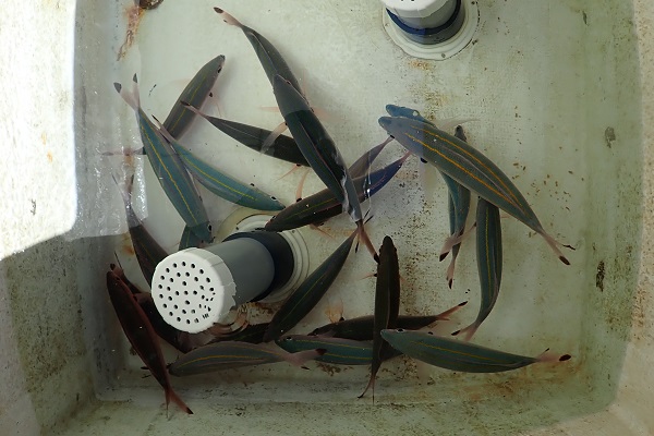 | 台風の影響で北風が強く、沖は大きなうねりが入ってきています。 今日は久し振りに体験フィッシングへ行って来ました。 いつも体験フィッシングを行なっているポイントでは波があったので、湾内まで移動して餌釣り開始。今日は魚の機嫌が悪く、本命ナミハタを釣るまで移動の連続。それでもなんとか2匹キャッチ! 今度は海況が良い日に沖へ出て大物狙いに行きましょうね。 |