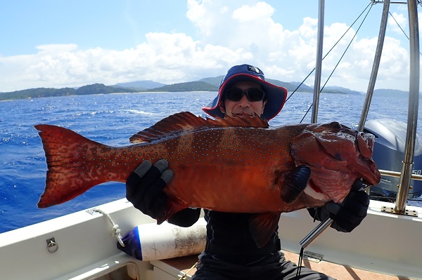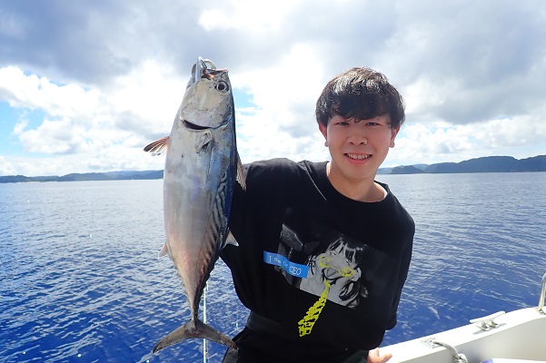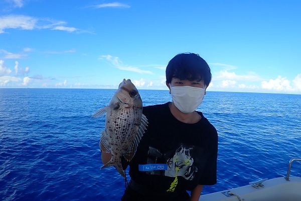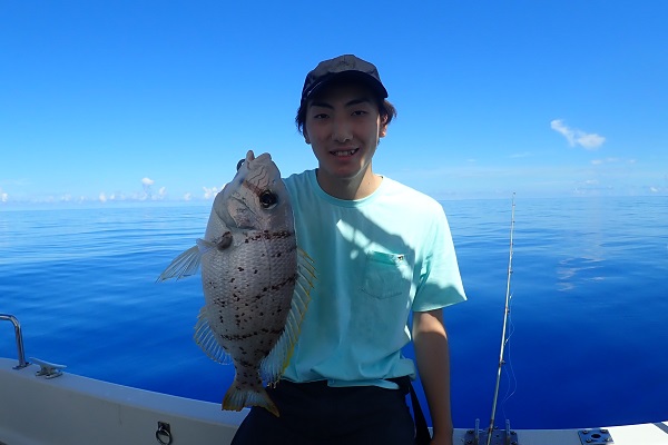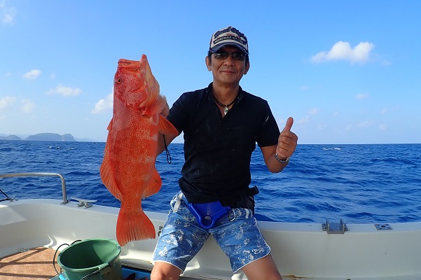 | 気が付けばもう9月。相変わらず緊急事態宣言継続中で観光客の少ない西表島です。こんなタイミングに限って波1mのべた凪が続くんです。 今日は釣り好き大学生と半日チャーターで沖へ出て釣りしてきました。 魚の活性がとっても悪く、いつものフエフダキイもポツポツしか釣れません。ポイントを転々としていると、良いサイズのオジサンを1匹ゲット! 餌釣りで食いが悪い時には大物の食いが良い時がある!っと願って、餌釣り用レンタルタックルのPE1.5号・リーダー8号、ハリス20号とアンバランスな感じで1発大物狙いへ。 ぎりぎりな戦いでしたが、5kg前後の良型クルバニーアカジンを見事キャッチとなりました。身体の傷が物語っていますね・・。 ベタ凪の海、最高級魚のアカジン、この笑顔、最高の半日チャーターとなりました。贅沢に美味しく食べてくださいね〜 |