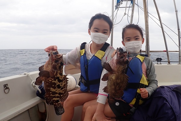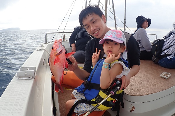 | 今日は最高気温26℃ととってもすごし易いお天気の西表島です。 本日のゲストは去年体験フィッシングにご参加いただいたリピーターファミリーです。居酒屋を予約して美味しいお魚を狙ってきました。 釣り開始時は魚の活性も良くフエフダキイは入れ食いです。時々混じるハタに大喜びでした。お母さんも釣りに挑戦して、 アカハタやクチナジといった美味しいお魚をしっかりキープです。 餌釣りの後は水深70〜80mでタイラバにチャレンジしましたが今回は残念ながらノーバイトでした。途中お昼寝もはさみのんびりとしたファミリーフィッシングとなりました。美味しい夕食を堪能して下さいね。 |