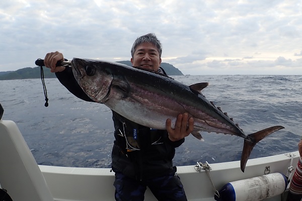 | 朝から緩めの南風と気持ちの良い天気の西表島です。今日はご夫婦でジギング対決です。スロージギングタックルを新調して気合い十分です。 潮の流れも緩く活性はいまいちでしたがファーストフィッシュはフエダイ。その後はサメに魚を食べられながらも、 水深100mで根魚・回遊魚共にキャッチ。悔しいバラシもありましたが、 今日の大物賞はツムブリです。ファーストランも今日一番の勢いでした。 色々な魚が釣れましたが西表島にはまだまだ怪物が居ます。 是非また遊びに来てくださいね〜 |